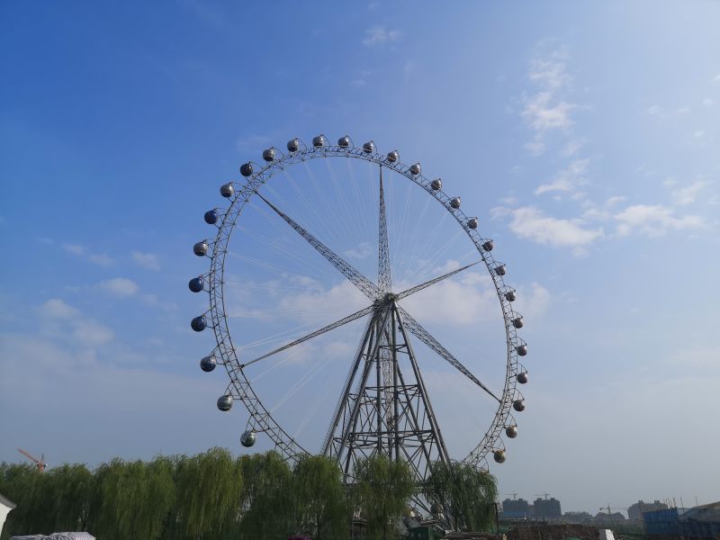 項(xiàng)目亮點(diǎn):該設(shè)備是國內(nèi)第三臺108米人字支撐全拉索結(jié)構(gòu)高端定制摩天輪。